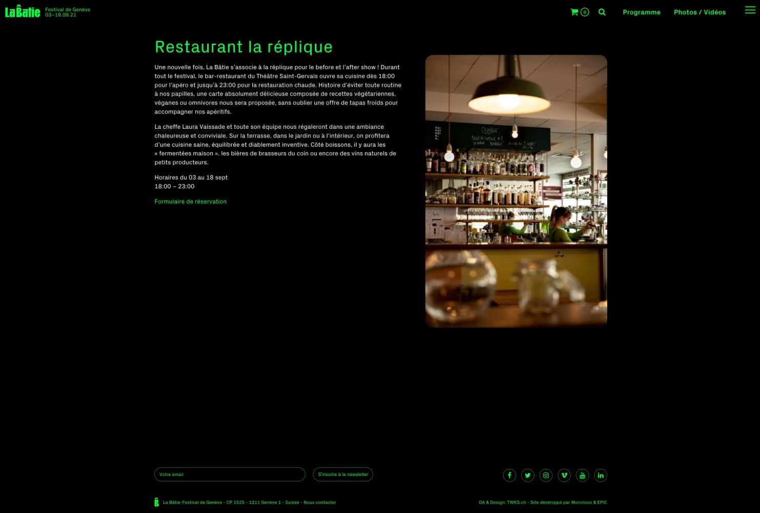 Depuis plusieurs années, la Bâtie nous fait confiance pour la réalisation de son site Internet. Il est à chaque édition adapté à la ligne graphique. Nous avons intégré la billetterie Infomaniak au travers de l’API pour une expérience utilisateur optimale.