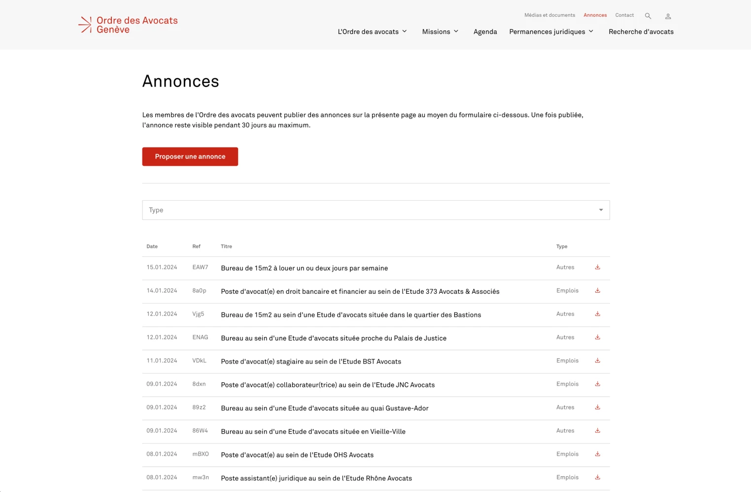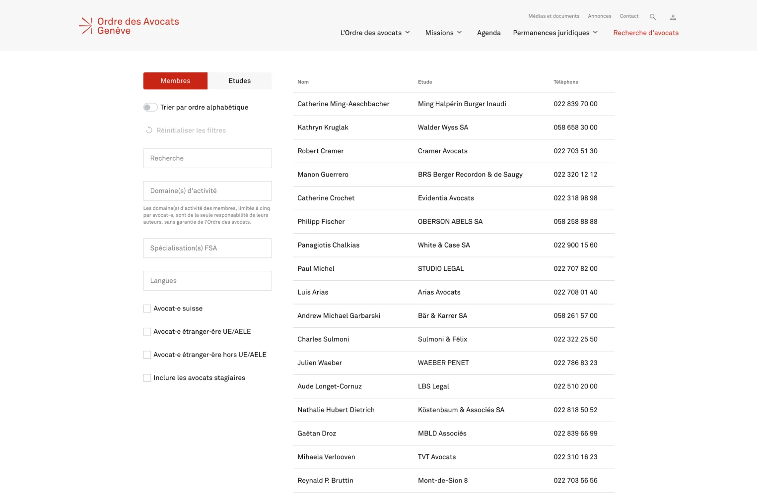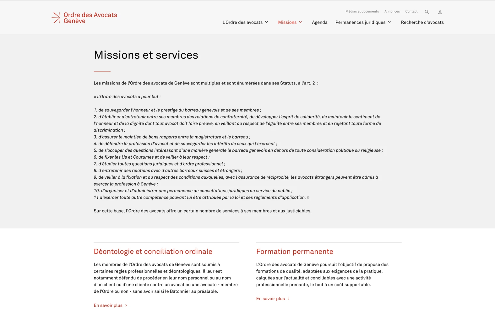 Nous avons développé le site web et le CRM pour l'Ordre des avocats de Genève.