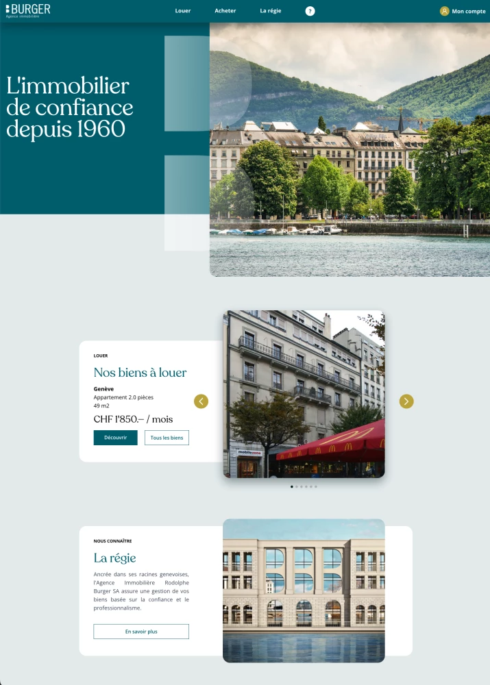 Nouvelle identité et donc nouveau site pour l'agence immobilière Rodolphe Burger SA. Ce nouveau site correspond mieux à l’image du bureau et est optimisé au point de vue du référencement et de sa rapidité de consultation. Le site importe automatiquement les offres publiés dans l' outil de gestion immobilière "Quorum".